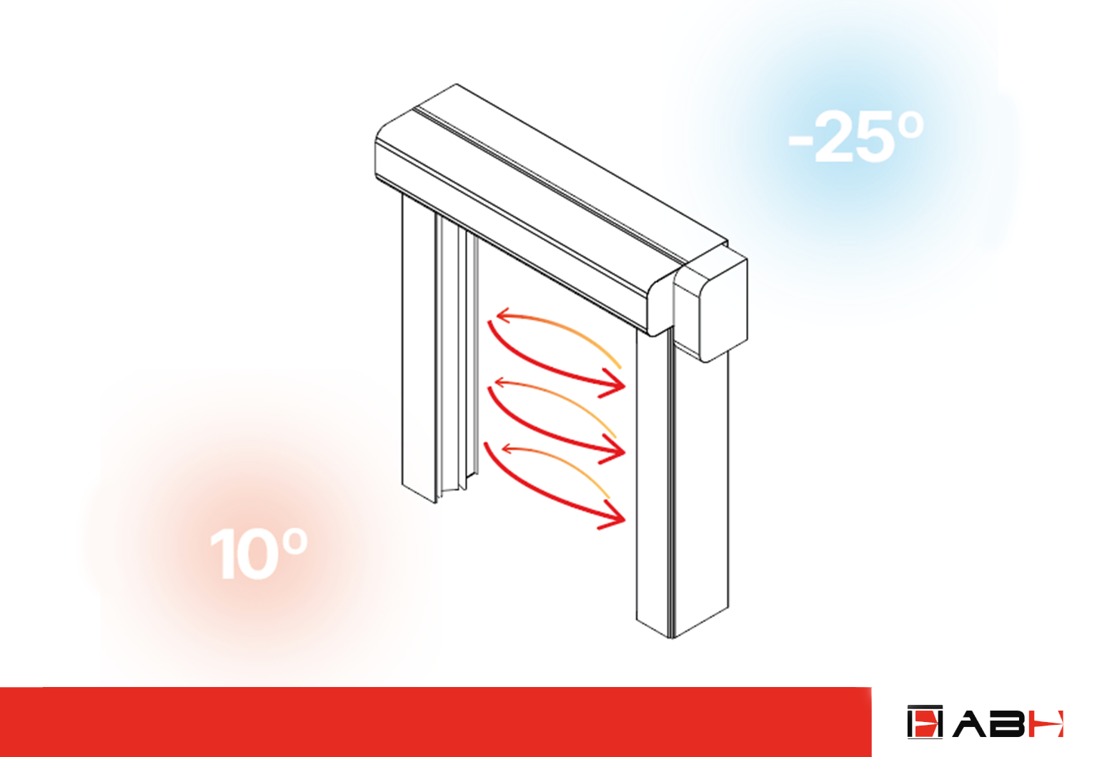 No importa si hablamos de una cámara de congelación industrial o de un espacio logístico con saltos térmicos de hasta 35°C: esta puerta está diseñada para adaptarse a los entornos más exigentes. Sus guías calefactadas y el exclusivo sistema de doble lona con cámara de aire caliente permiten que el hielo y la escarcha no sean un problema nunca más.